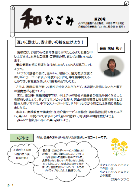 山口市介護者の会広報紙「和(なごみ)」3月号